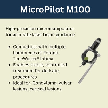 Laser parameters—such as wavelength, pulse duration, and energy density—must be carefully adjusted based on anatomical location and tissue response. Specialized tools like the MicroPilot M100 are engineered to support accurate treatment of sensitive vulvar and cervical tissue while reducing unnecessary thermal spread.