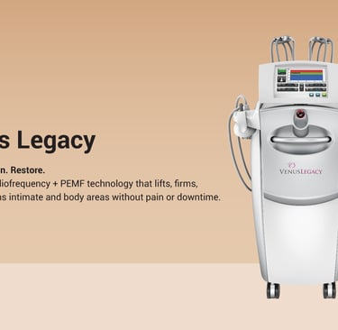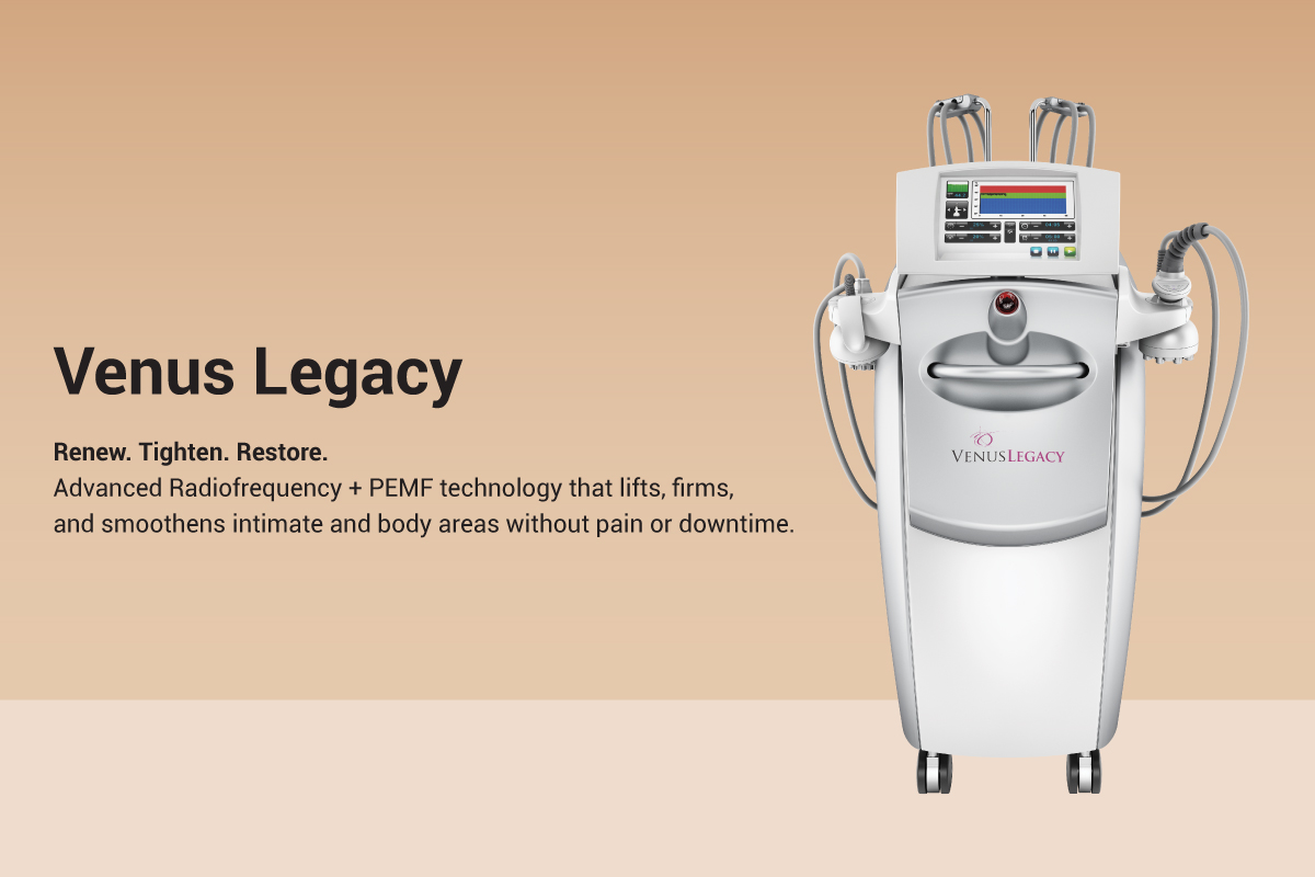 Venus Legacy® combines Multi-Polar Radiofrequency, Pulsed Electromagnetic Fields (PEMF), and VariPulse™ technology to deliver a warm, soothing, and deeply restorative treatment experience. Designed for the external intimate area, it supports firmer, smoother, and more nourished skin—naturally and non-invasively.
